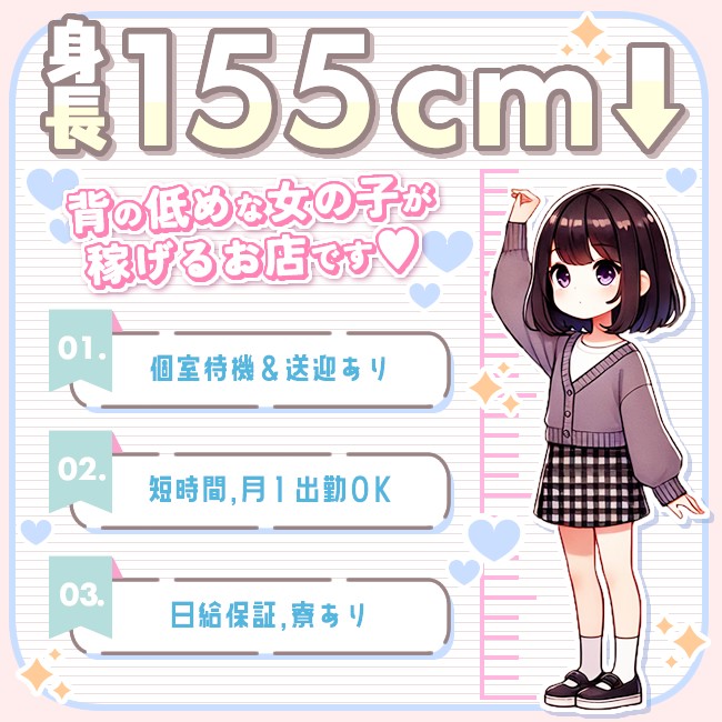 身長155cmまでの小さめの女性におススメです!低身長が稼ぐ武器になります! - 低身長155cmの女性が稼げるヘルス「ミニィ娘くらぶ」 | メンズエステの高収入求人サイト【メンエスジョブ】